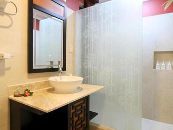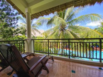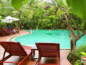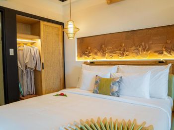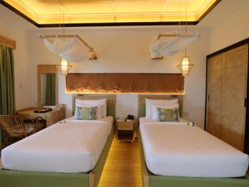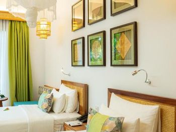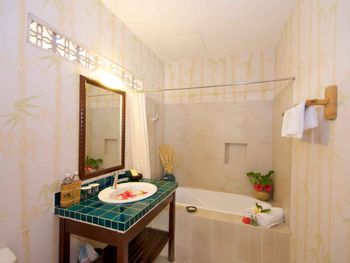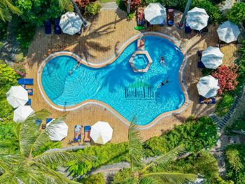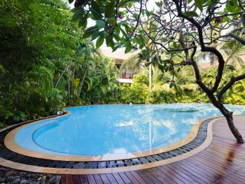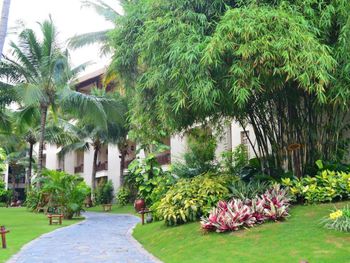 Плюсы: Просто волшебный отель! Прям джунгли! Невероятное количество зелени, очень ухоженная и красивая территория, ландшафтные дизайнеры постарались! Пальмы, прудики с рыбками, качели, очень красивые бассейны, пляж потрясающий. В общем все было просто волшебно. Завтрак невероятный, хоть я и ела только фрукты, но выбор огромный. Рядом полно кафешек и продаются все азиатские фрукты прям вдоль улицы. Большой номер с балконом, опять же все утопает в зелени, поэтому на балконе ты чувствуешь уединение.