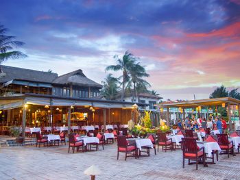 Плюсы: Хороший отель на 4+. Не современный, но при этом имеет свой шарм, зелёный потрясающий сад, все бунгало расположены уединённо, все утопает в зелени, при том что комплекс находится прям на пляже. Завтраки супер. На велком угощают двумя красивыми фруктами драконами.два бассеине.рядом оживленная улица с ресторанчиками.кстати рекомендую немецкий рест.