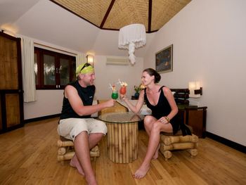 Не разрешали слушать музыку у бассейна! Вечером включили колонку на балконе в своем бунгало и тут же пришел охранник и попросил выключить.