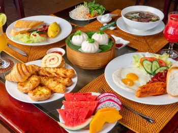 Не понравилось: Кухня отвратительная, кроме омлета, яичницы и супа "фо", там кушать больше нечего... Приготовление омлета - это не кухня... Всяческие рыбные нарезки, сырокопчёности и прочие морепродукты, - этого добра там никогда и ничего не было вообще, хотя рядом есть великолепное море и рыбы должно было быть много и любая, но увы... Мы её не видели...