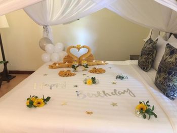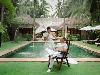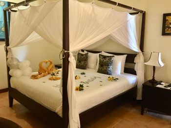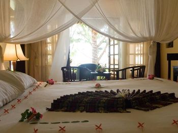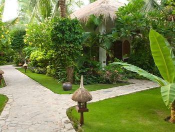 Каждая вилла оснащена террасой с небольшим диваном. В комнате установлен кондиционер, сейф и электрический чайник, а также предоставляется фен. В распоряжении гостей собственная ванная комната с бесплатными туалетными принадлежностями, из которой открывается вид на сад.