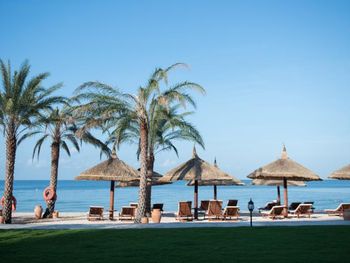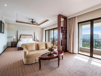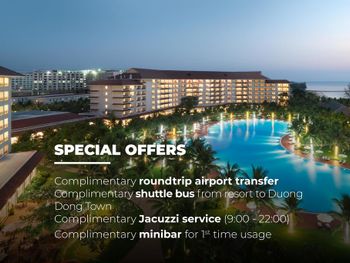 Плюсы: Комфортные номера, со всеми необходимым, приятные халаты! Огромный бассейн, ухоженная территория, приветливый персонал. Отличное море с чистым пляжем и песком. Оборудован душем и уборной, имеется лежаки, полотенца и бар. Предоставляют бесплатные трансферы в город, в сафари, в парк развлечении. Билеты туда можно купить в отеле. Советую сафари и парк развлечении посетить в разные дни если вы с детьми, так как концу дня изрядно устаешь. Кстати рядом с нет никаких супермаркетов и т д. Есть несколько кафе и баров, цены выше среднего, к примеру кофе, чай матча начинаются от 100 тыс донгов и выше.
