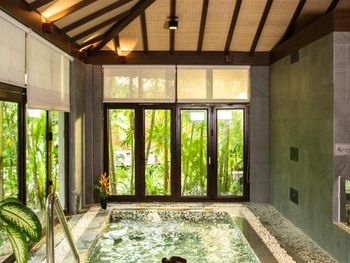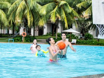Курортный спа-отель Vinpearl Phu Quoc с архитектурой в индокитайском стиле и ярко-красной плиткой предлагает своим гостям отдых в открытом бассейне площадью почти 5000 кв. м. Гости могут гулять по пляжу, любуясь закатом, отдыхать на зеленых участках отеля или расслабиться в кресле за просмотром любимого семейного фильма в пляжном кинотеатре. Для гостей сервируют «шведский стол» с морепродуктами в расположенном у моря ресторане Pepper, где звучит живая музыка и откуда открывается великолепный вид на закат. Кроме того, гости могут насладиться уникальным балийским массажем в спокойной обстановке спа-хижины.
