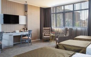 Нам очень понравился этот отель ❤️ Номера просторные около 40 м², комфортные и уютные. В номере есть всё необходимое: кабельное ТВ, чайник, вода, отличная система кондиционирования , всё продумано для удобства гостей. При заселении нас приятно удивили комплиментом тарелкой фруктов. И так как у меня был день рождения 🎉сразу после 12 ночи сотрудники принесли торт со свечами 🎂 это было очень трогательно и неожиданно. Спасибо за такое внимание! Завтрак — шведский стол, разнообразный и вкусный, большой выбор блюд. В отеле также есть сауна и хамам отличное место, чтобы расслабиться. Расположение просто супер! 👍 По прямой вниз всего 12 минут пешком до морского порта и набережной. Рядом метро «28 мая» и остановки автобусов — удобно добираться и по городу, и в аэропорт. В общем, мы обязательно вернёмся снова и с удовольствием рекомендуем этот отель 🏨