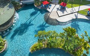 Из отеля Le Meridien Bali Jimbaran открывается панорамный вид на океан. Гости могут поплавать в лагуне с соленой водой площадью 1300 кв. м. К услугам гостей 2 ресторана и роскошные номера с кондиционером. В числе удобств бесплатный Wi-Fi на всей территории. Гостям предлагают бесплатный трансфер до пляжа по расписанию. Стильные номера обставлены современной мебелью. В каждом номере есть 3D-телевизор с плоским экраном с технологией Smart TV и спутниковыми каналами, а также мини-бар и принадлежности для чая/кофе. Элегантная собственная ванная комната с отдельной ванной и душем укомплектована эксклюзивными туалетно-косметическими принадлежностями. В ресторане Bamboo Chic подают блюда паназиатской кухни. Вечерние закуски и кофе можно заказать в лобби-лаундже Latitude 8. В кафе WaLa с видом на лагуну предлагают домашний десерт джелато. В баре на крыше Smoqee гости могут выпить коктейли и полюбоваться панорамным видом. На круглосуточной стойке регистрации имеется камера хранения багажа. За дополнительную плату предоставляется трансфер от/до аэропорта. В числе удобств на территории отеля тренажерный зал и спа-центр. Сотрудники экскурсионного бюро организуют туры и экскурсии по острову и прокат автомобилей, а также предлагают услуги билетной кассы. Пляж Джимбаран находится всего в нескольких минутах ходьбы от отеля Le Meridien Bali Jimbaran. Парк культуры Гаруда Вишну Кенчана расположен в 10 км. Расстояние до международного аэропорта Нгурах-Рай составляет 8 км.
