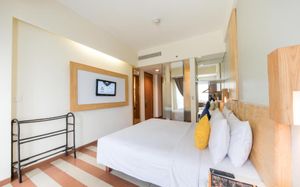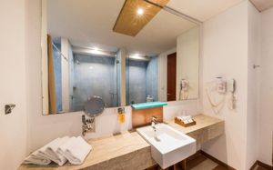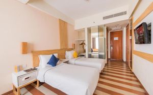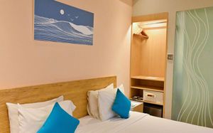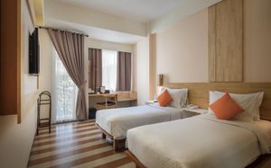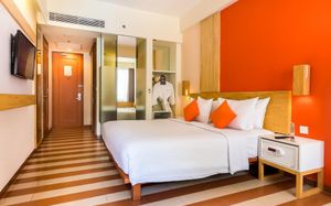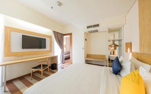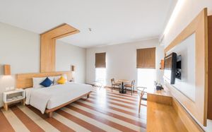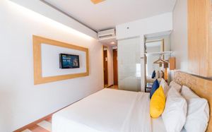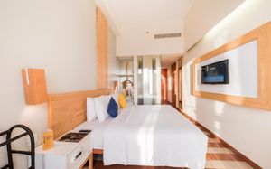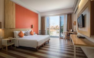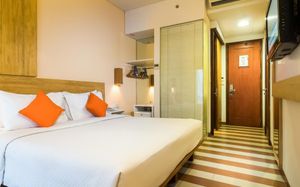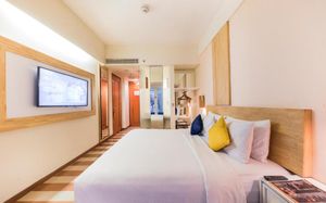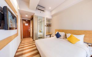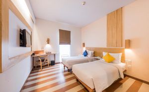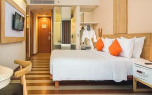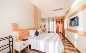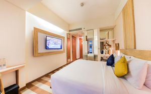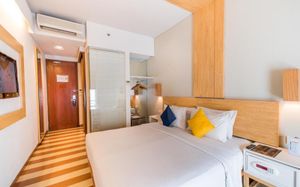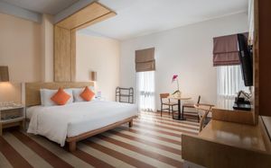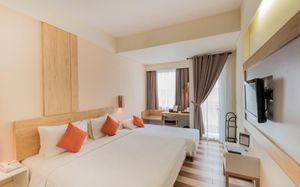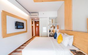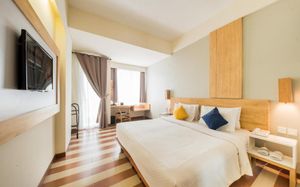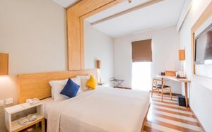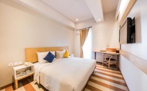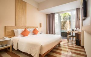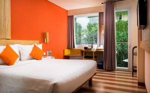 The ONE Legian offers a modern 4-star accommodation with contemporary minimalist designs on the lively street of Legian, Kuta. It is within walking distance to shops and restaurants and nightlife centre is just a 5-minute walk away. The property features an outdoor rooftop pool, a ground pool, and a restaurant. Free WiFi is available throughout the property. Rooms at The ONE come with light wooden furniture and a tall window. Each room has a flat-screen satellite TV, a safety deposit box and a small work desk. En suite bathrooms offer toiletries and a hairdryer. Guests can exercise in the fitness centre, or relax on the sun loungers at the two-storey pool deck. A business centre takes care of guests’ communication needs. Laundry and dry cleaning services are available. Children must be under parents supervision at all time. Buffet breakfast is served at the restaurant, which also provides room service. The pool bar offers cocktails, while snacks and live entertainment can be enjoyed at the lobby bar. The ONE Legian Bali is approximately 7 km from Ngurah Rai International Airport.