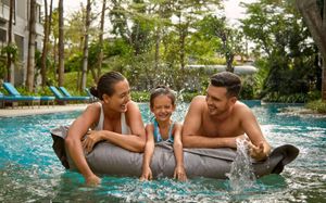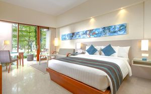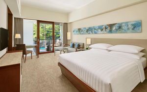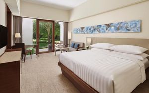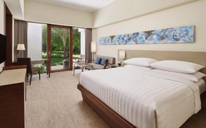 К услугам гостей 5-звездочного курортного отеля Courtyard by Mariott Bali Nusa Dua большой пейзажный бассейн в форме лагуны с шезлонгами, фитнес-центр, открытый круглосуточно и без выходных, пляжный клуб и 5 баров и ресторанов. На всей территории работает бесплатный Wi-Fi. Белый песчаный пляж Нуса-Дуа находится в 15 минутах ходьбы или в 3 минутах езды от отеля (для гостей организован бесплатный трансфер).