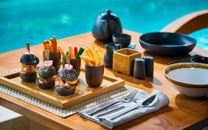 В течение всего дня в стильном кафе Momo подают блюда интернациональной кухни. В лобби-лаундже и в баре у бассейна гостям предложат легкие закуски и напитки. В отеле также есть пляжный клуб с лаундж-баром и шезлонгами.