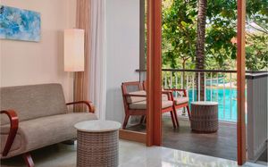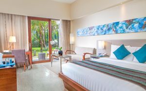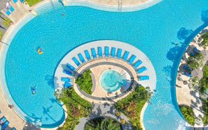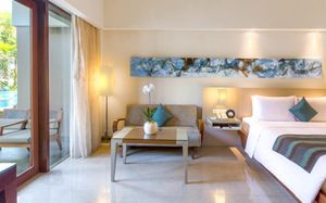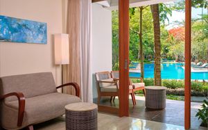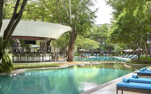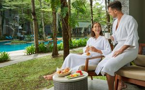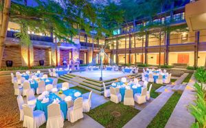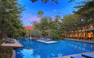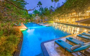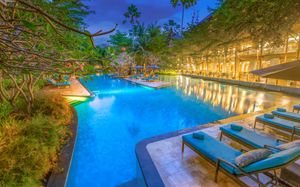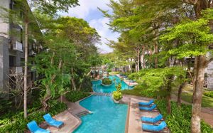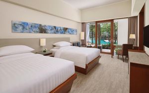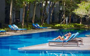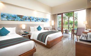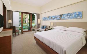 К услугам гостей 5-звездочного курортного отеля Courtyard by Mariott Bali Nusa Dua большой пейзажный бассейн в форме лагуны с шезлонгами, фитнес-центр, открытый круглосуточно и без выходных, пляжный клуб и 5 баров и ресторанов. На всей территории работает бесплатный Wi-Fi. Белый песчаный пляж Нуса-Дуа находится в 15 минутах ходьбы или в 3 минутах езды от отеля (для гостей организован бесплатный трансфер).