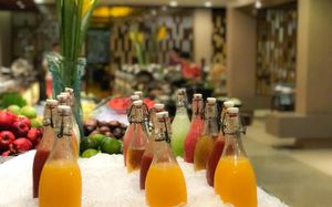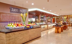 В течение всего дня в стильном кафе Momo подают блюда интернациональной кухни. В лобби-лаундже и в баре у бассейна гостям предложат легкие закуски и напитки. В отеле также есть пляжный клуб с лаундж-баром и шезлонгами.