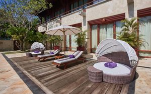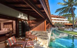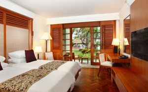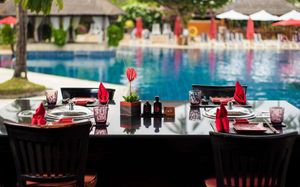 Отель состоит из трех 4-х этажных корпусов. Расположен на прекрасном пляже экзотического острова Бали Нуса Дуа, в окружении роскошных садов, представляет собой оазис роскоши и спокойствия. Внимание! При заезде в отель взимается депозит, примерная стоимость которого составляет 100$.