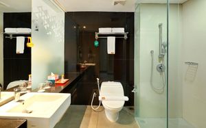 Boasting contemporary modern design, the brightly decorated rooms are fitted with a 50-inch Smart TV, safety deposit box and air conditioning. The property is also equipped with a minibar and an electric kettle. Attached bathroom comes with a shower, hairdryer and free toiletries. Guests can take a dip in the pool, have a relaxing massage at the spa and wellness centre or work out at the gym.