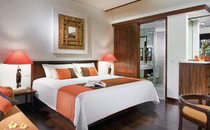 Furnished with dark wood fittings, Novotel Benoa’s rooms feature either a private balcony or tropical garden views. They are well-appointed with satellite TV, a safe and seating area.