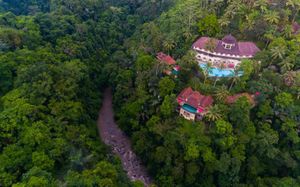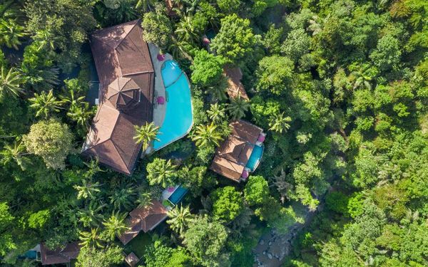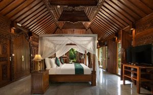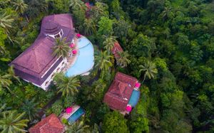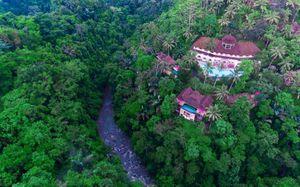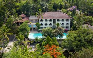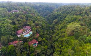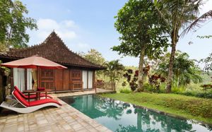 Курортный отель Ayung Ubud с открытым бассейном расположен окружен пышной т...