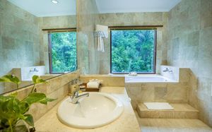 Здесь по отелю сплошные плюсы! Отель такой же как на картинке! Все очень чисто, красиво, ухоженно, подметают каждое утро! Встретили welcome drink! Очень вкусно! Не привычно вежливые! У меня номер был вид на большой бассейн,на джунгли! Номер 313! Еда очень вкусная, постоянно спрашивали есть ли у вас аллергия, еду готовят под тебя! И завтракаешь с красивым видом! Очень комфортная температура! И с 4 до 6 дня бонусом чай или кофе с вкусняшками! Очень все понравилось! Рекомендую!