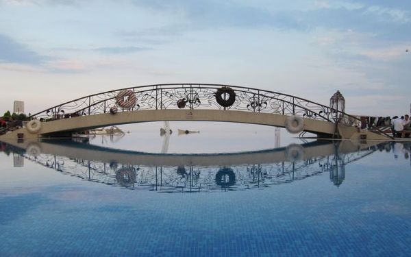 Красивый вид, красивые места вокруг где можно погулять, не много людей, вайб, наличие в шаговой доступности аквапарка, зип лайна, прогулок на лошадях