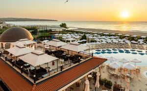 Alua Helios Bay - All Inclusive — это отель с 4 звездами на первой линии города Обзор. В распоряжении гостей открытый бассейн, фитнес-центр и сад. За дополнительную плату можно воспользоваться частной парковкой. Гостям предоставляется бесплатный Wi-Fi. Среди удобств отеля — крытый бассейн, караоке и детский клуб. В номерах Alua Helios Bay - All Inclusive установлен кондиционер, сейф и телевизор с плоским экраном. Среди прочих удобств — платяной шкаф, а также собственная ванная комната с душем. В собственной ванной комнате есть бесплатные туалетно-косметические принадлежности. В распоряжении всех гостей холодильник. Для гостей сервируется завтрак «шведский стол», континентальный завтрак или американский завтрак. При Alua Helios Bay - All Inclusive работает ресторан, где подают блюда местной кухни, блюда азиатской кухни и блюда международной кухни. Гости могут попросить приготовить вегетарианские, халяльные и безглютеновые блюда. К услугам гостей Alua Helios Bay - All Inclusive — терраса. На территории Alua Helios Bay - All Inclusive можно поиграть в настольный теннис. К услугам гостей аренда автомобилей. Сотрудники круглосуточной стойки регистрации говорят на болгарском, на английском, на французском и на русском и всегда готовы предоставить гостям полезную информацию. Alua Helios Bay - All Inclusive располагается на расстоянии 200 м и 34 км соответственно от таких достопримечательностей, как Центральный пляж Обзора и Аквапарк Action. Аэропорт Бургас находится в 63 км.