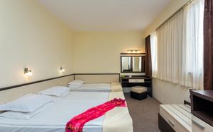 Очень грязно, в номере была вырвана дверь в ванную, не закрывалась. Присесть покушать негде все занято - кушайте стоя! Администратор дама в очках - хамка, сказала что это мои проблемы, что я её не понимаю, орала на болгарском, хотя заявлено что говорят на 4-х языках. Если есть проблема с номером или нет места для обеда администрация вам скажет это ваши проблемы! Остальной персонал вроде и рад помочь но эту высокую женщину видимо они боятся! Парковка забудьте, её там просто нет Выйти кстати пешком с отеля тоже не выйдет, перегорожено машинами Кухня не вкусная, однообразная и если придёте через час от начала завтрака, обеда или ужина уже нет ничего Перекусы ужасные, почти нет ничего Анимация я такого не видела 3 минуты каждый день одна песня, на этом всё Бассейн грязный и маленький Территории нет Жаль видео не выложить