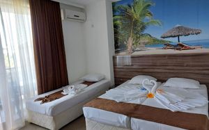 Отличный большой номер, идеальная чистота. Все необходимое в наличии. Все соответствует и фото и описаниям. Гостеприимные хозяева. Наличие парковки. Оборудованный пляж в пешей доступности, также и центральная улица.