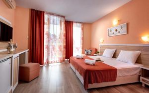 Расположение очень удобное, до моря пара шагов. Пляж хороший песчаный, часть пляжа платная ( 21 лев за 2 лежака и зонт) и часть бесплатная люди лежат на песочке на полотенцах. Море чистое. В отеле тоже очень чисто, уборка каждый день. Завтрак включён, мы с ребёнком 3 лет наедались, мужчина наестся вряд ли. В отеле тихо , ресторан в низу не работал. Бассейн чистый, лежаков у бассейна много!