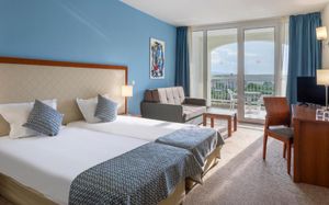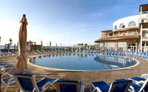 Современный комплекс Sol Luna Bay с обслуживанием по системе «все включено» расположен на пляже в городе Обзор. Аквапарк, крытый и открытый бассейны, а также тренажерный зал гости могут посещать бесплатно. Кроме того, в отеле работает спа-центр. На пляже установлены бесплатные зонтики и бесплатные шезлонги. Номера с кондиционером обставлены современной мебелью. Телевизор со спутниковыми каналами, мини-бар, сейф и письменный стол входят в стандартную комплектацию каждого из номеров. Ванная комната с душем и ванной укомплектована феном и бесплатными туалетно-косметическими принадлежностями. С балкона открывается вид на море или парк. На территории отеля Sol Luna Bay All Inclusive работает 3 тематических ресторана: помимо главного ресторана, гостей ждут в итальянском и болгарском ресторанах, где на ужин можно заказать типичные блюда итальянской и болгарской кухонь (столик рекомендуется бронировать заранее). В снэк-барах отеля подаются итальянские и испанские закуски. Также к услугам гостей — лобби-бар и бар у бассейна. В аквапарке имеются различные развлекательные аттракционы: водные горки, «Акватьюб», «МалтиТрэк», «Камикадзе», «Ролба» и различные игры на воде для самых маленьких. С аквабашни открывается панорамный вид на всю территорию отеля и море. Расстояние до аэропортов Варны и Бургаса составляет 63 км.