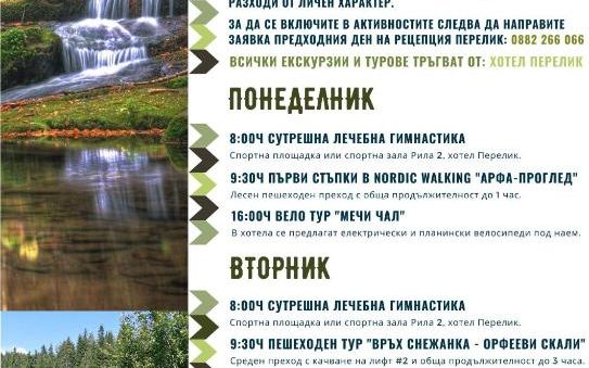 Отель Perelik расположен в центре курорта Пампорово. К услугам гостей недавно отремонтированные хорошо оборудованные номера и широкий выбор ресторанов. В отеле можно воспользоваться бесплатным Wi-Fi и частной парковкой на открытом воздухе. Гости могут попробовать блюда болгарской и европейской кухонь в ресторане отеля, который рассчитан на 400 мест, или посетить современный ресторан Neptun с обслуживанием по меню. В лобби-баре с панорамным видом, в ночном клубе или баре апре-ски отеля можно насладиться любимым напитком. В распоряжении гостей боулинг, теннисный корт и детский клуб. В отеле Perelik работает спа-центр Body & Soul с полуолимпийским плавательным бассейном и различными комнатами отдыха общей площадью 2 700 кв. метров. В отеле также есть самый большой конференц-центр с 6 современно оборудованными конференц-залами на 1 000 мест, включая самый большой многофункциональный зал на 750 мест. В зимний сезон гости могут бесплатно пользоваться помещением для хранения лыж и услугами трансфера. За дополнительную плату можно приобрести ски-пассы, взять напрокат лыжи и посетить лыжную школу.