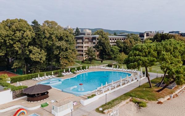 The hotel has a lobby bar, restaurant with a terrace, specializing in Bulgarian and International cuisine, an outdoor swimming pool and a children pool, well-equipped fitness centre and 2 conference halls. Free WiFi is provided in all areas.