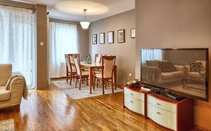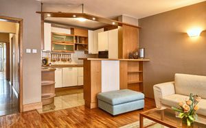 Апартаменты располагают полностью оборудованной кухней с плитой, духовкой, микроволновой печью, стиральной машиной, электрическим чайником, тостером и кофемашиной. В вашем распоряжении гостиная с диваном, обеденная зона со столом на 4 персоны и телевизор с плоским экраном и спутниковыми каналами.