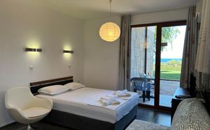 Расстояние до пляжа Хармани составляет 1,5 км. Поездка до живописного пляжа Каваци займет 5 минут, а до природоохранной зоны Аркутино — 20 минут.