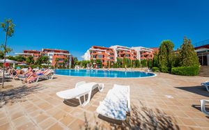 Апарт-отель Green Fort Noks расположен в живописном месте, где сосновый лес граничит с песчаным пляжем, у подножия гор курорта Солнечный берег. Комплекс с прекрасным видом на море и уникальным сочетанием морского и горного климата находится всего в 5 минутах ходьбы от пляжа. Полностью меблированные апартаменты располагают спальней, столовой, хорошо оборудованной кухней и гостиной с диваном-кроватью и журнальным столиком. Во всех апартаментах гостям предоставляются бесплатный Wi-Fi и телевизор с более чем 20 английскими и 40 российскими цифровыми каналами. На территории отеля Green Fort Noks для детей оборудованы специальный плавательный бассейн, водная горка и игровая площадка. Гости могут поиграть на теннисном корте или футбольном поле и поужинать в ресторане с террасой в саду, с которой открывается панорамный вид на море. Комплекс Green Fort расположен рядом с охраняемым ЮНЕСКО древним городом Несебр, где история до сих пор живет в многочисленных старых церквях и средневековых зданиях.