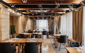 В изысканном ресторане с обслуживанием по меню подают уникальные творения шеф-поваров отеля Meneghetti, которые сочетают современную технологию здорового питания с высоким качеством ингредиентов. По запросу организуются уроки поварского искусства и курсы сомелье.