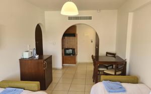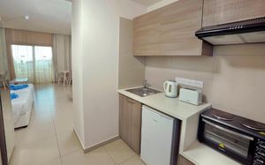 Во всех апартаментах имеется мини-кухня и уютная гостиная-обеденная зона. Кондиционером, сейфом и холодильником можно пользоваться бесплатно. Также в апарт-отеле Euronapa предусмотрены такие удобства для отдыха и развлечений, как многоцелевая спортивная площадка и бильярдный стол.