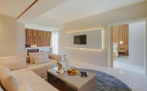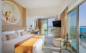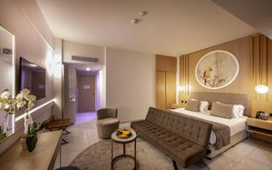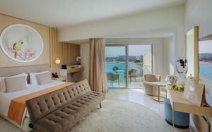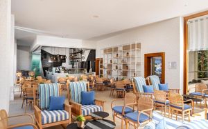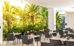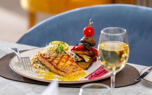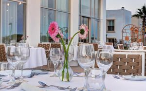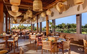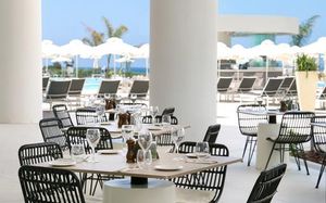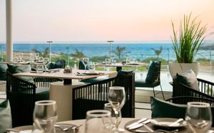 Обед для гостей по системе AI, FB и HB, желающих обменять свой ужин на обед, подается в бистро-ресторане Theros с 12:00 до 16:00. Салат-бар, выбор основных блюд и десерт включены в условия проживания. Некоторые блюда могут быть за дополнительную оплату