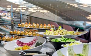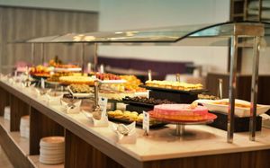 Элегантный английский/американский завтрак (шведский стол) с 07:00 до 10:30, континентальный завтрак до 11:00. А также ужин (шведский стол) с широким выбором ежедневных тематических вечеров, местной едой, салат-баром, детским буфетом и десертами с 19:00 до 21:30