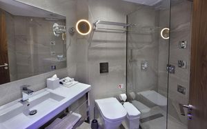 Низкая раковина Высокий туалет Подходит для гостей в инвалидных креслах Полностью подходит для гостей с ограниченными физическими возможностями Лифт для доступа к верхним этажам
