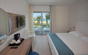Отель расположен около моря. Напротив отеля дно в море каменистое, надо пройти немного влево. У отеля имеется пляжная зона с лежаками, но если вы хотите на них загорать придется занимать в семь утра :) Также лежаки у бассейна и на полянке у отеля. Завтраки и ужины понравились. На ужине всегда можно было найти еду по душе. Персонал дружелюбный и отзывчивый. Номер у нас был просторный для троих, с видом на море и балконе, где можно высушить купальники.
