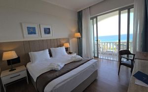 Отличный чистый отель расположенный в 100 метрах от песчаного пляжа. Большой бассейн в 50 метрах от отеля. Ужин - отдельный вид удовольствия. Шведский стол на террасе, под живую музыку, свечки зажгли, вид на заказ и на горы с морем был шикарен. Очень понравился отель