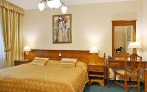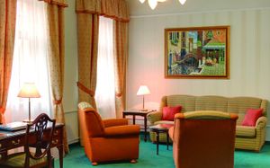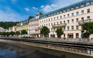 Этот 4-звездочный отель расположен на берегу реки Тепла в центре Карловых Вар. К услугам гостей крытый бассейн и сауна. Горячие источники Карловых Вар находятся всего в 5 метрах.