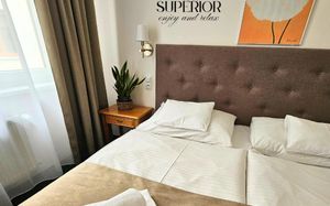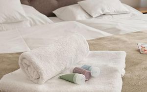 Отель находится в 2 минутах от моря, номер не большой, но в нем все необходимое есть, главное, что есть холодильник. На первом этаже есть микроволновка. Очень приятный отзывчивый персонал