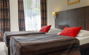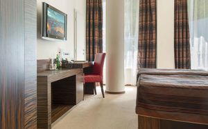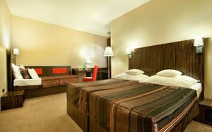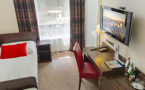 К услугам гостей также финская сауна, конференц-зал на 60 человек и ресторан с террасой, где сервируется завтрак «шведский стол».