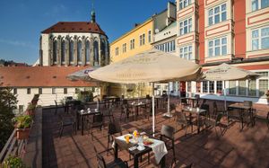 Hotel Juliš offers a rich breakfast buffet, available daily from 07:00 to 10:00. In the summer months, the breakfast can be enjoyed on a large terrace overlooking the quiet Franciscan Garden.