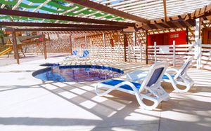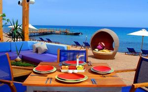 Роскошный отель, расположенный на берегу моря в Дахабе. Представляет собой комплекс двухэтажных корпусов. Выполнен в оригинальном арабском стиле, по всей территории, на полу, на стенах цитаты из стихов Омара Хайяма. Рекомендуем для спокойного отдыха парам и молодоженам.