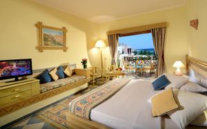 Гостям отеля Tropitel Dahab Oasis предлагаются номера с кондиционером, телевизором со спутниковыми каналами и балконом с видом на залив или пустыню.