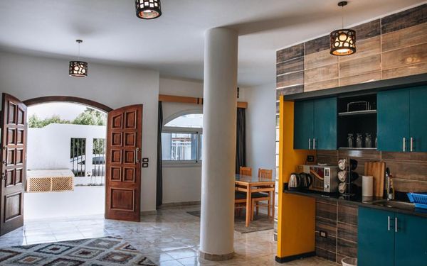 Замечательные апартаменты! Достаточно большие, чистые, оборудованные всем необходимым для комфортного пребывания. Расположены на краю Дахаба. До лагуны 20 минут спокойным шагом или 10 минут на велосипеде (можно взять на ресепшн). В лагуне вы можете насладиться незабываемым рассветом. Если лень идти в лагуну, можно наблюдать рассвет с крыши отеля (с нее тоже есть вид на море). Ибрагим готовит отличные завтраки, вы можете выбрать континентальный завтрак или египетский, а можете запросить и то и то. Спасибо всем большое, мне было хорошо!)