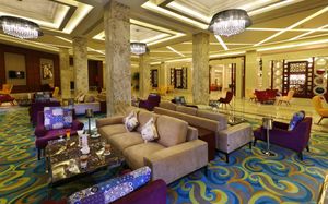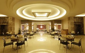 Приятный Лоби бар и центральный вход, охрана на всей территории отеля.