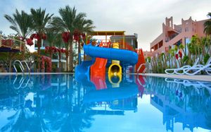 Защитные барьеры для детей Детский клуб Семейные номера Няня / услуги по уходу за детьми Буфет, подходящий для детей Детское меню Детский бассейн Детская площадка на улице Водная горка Аквапарк Оборудование для занятия водными видами спорта (на территории) Телевизор с плоским экраном Детская игровая площадка Телевизор Ныряние с маской и трубкой Дартс Настольный теннис