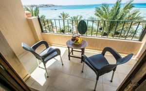 Отель окружен водой с трех сторон - внутри и снаружи здания в форме буквы U, что означает 99% номеров - с видом на море, а также легкий доступ к пляжу. Плюс самый длинный коралловый риф в центре Хургады (слева от отеля), который предлагает Вам удивительный, безопасный и легкий снорклинг.