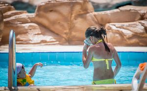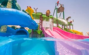 Palacio Pool 900 кв.м, 130 - 160 см. - с подогревом Palacio детский бассейн 100 кв.м, 60 см. - с подогревом Palma Infinity Pool 649 кв.м, 66 - 150 см. - с подогревом Palma Animation Pool 508 кв.м, 70 - 160 см Часы работы бассейнов с 07:00 до заката. Некоторые бассейны с подогревом 5 горок для взрослых и 4 детские. Рабочее время для водных горок 10:30-12:30 и 15:00-17:00