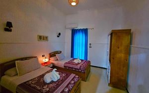 У нас было большое путешествие по Египту и мы много где снимали жилье. И я с уверенность могу сказать, что это был лучший вариант нашего размещения! Итак, пойдем по порядку: * Первое что хочется отметить - это персонал. Их отношение к гостям греет душу и радует. Нас встретили очень радушно, всегда были на связи и всегда были готовы помочь! Большое спасибо за это! Никто не пытался нас надурить, как это часто бывает в Египте. * Апартаменты очень большие и комфортные, колоритные, 3 спальни и просторная гостиная, есть кухня. В каждой комнате кондиционер (в одной правда не работал, но для нас это было не критично). Есть стиральная машина, посуда, холодильник, фен. В общем, все, что нужно для комфортного пребывания. * Сам отель небольшой, но очень душевный. На первом этаже есть кафе с очень приятными ценами. Мы заказывали еду прям в номер. На крыше терраса, где можно расположиться и наслаждаться видом. * Отличное расположение, через реку сразу Луксорский храм. Место тихое и спокойное. До пристани рукой подать. * Вид на Нил с номера и с террасы просто потрясающий * Без проблем организовали трансфер до автобусной остановки. Искренне рекомендую это место и желаю хозяину и персоналу дальнейшего процветания! Обязательно буду всем рекомендовать!