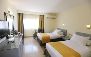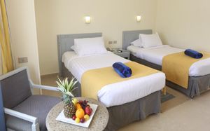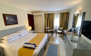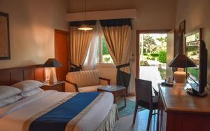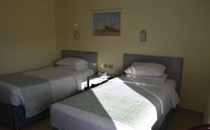 Территория большая, аккуратная, везде цветы, подстриженная трава, пляж чистый ,песок лучше, чем в Шарме: мелкий и цвет светлее. Номера небольшие по размеру, но кровати удобные, широкие. Так же был диванчик маленький,он тоже раскладывался. Мебель уже староватая, но нам вообще это не мешало, мы не из тех гостей, которые сидят в номере. Сотрудники приветливые, заселили сразу по приезде в 14 часов ,а также разрешили выехать из номера чуть позже, чем время чекаута. Отдыхали в декабре, гостей было очень мало, еды соответственно, тоже небольшой выбор. Анимации не было, оно и понятно, из-за 20 гостей её никто не будет проводить. Есть детская площадка с качелями и детской комнатой. Нашему ребёнку понравилось. Думаю, это один из лучших отелей в Нувейбе ,где соответствует цена-качество.